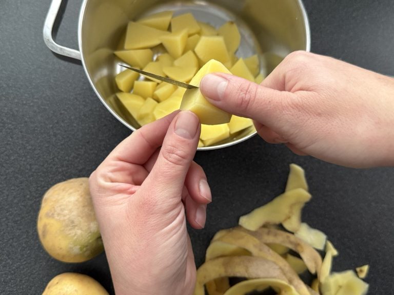 Kruimige aardappels werken het beste omdat ze de marinade goed opnemen.