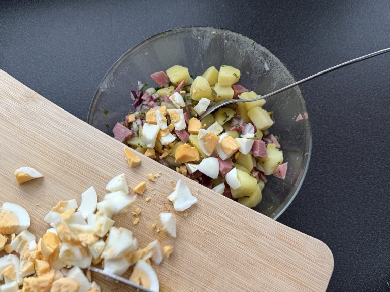 - optioneel mayonaise, ik gebruik dit in dit recept wel. (in Zuid-Duitsland maken ze hem zonder, in Noord-Duitsland mét)